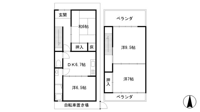 洋室9.5帖、洋室7帖、洋室6.5帖、和室6帖、DK6.7帖 |