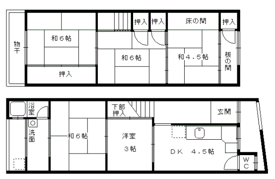 和室6帖、和室6帖、和室6帖、和室4.5帖、洋室3帖、DK4.5帖