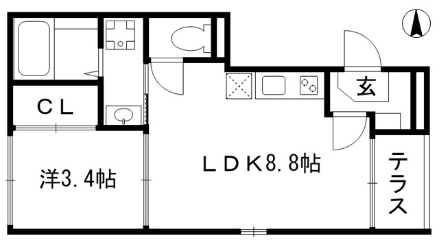 洋室3.4帖、LDK8.8帖 |
