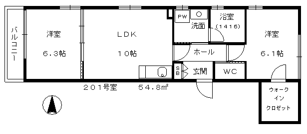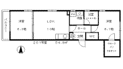 洋室6.3帖、洋室6.1帖、LDK10帖 |