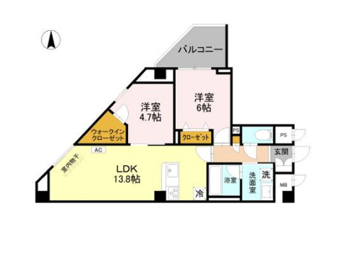 LDK13.8帖、洋室4.7帖、洋室6帖 |